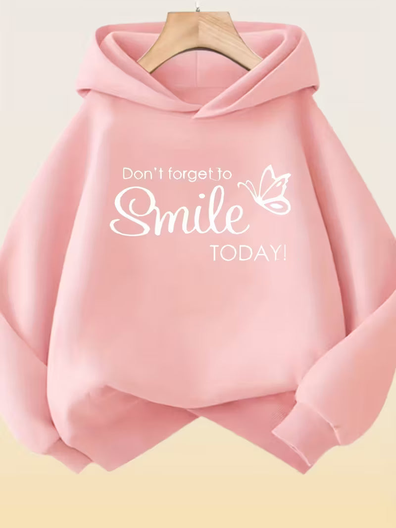 Pink Hoodie with “Don’t Forget to Smile Today” & Butterfly Graphic