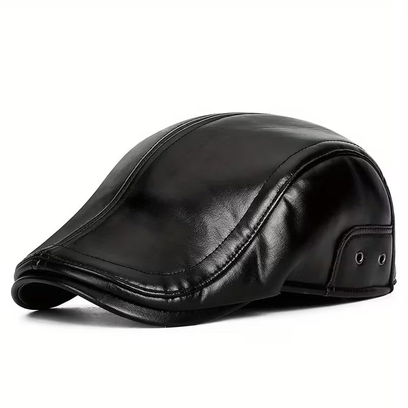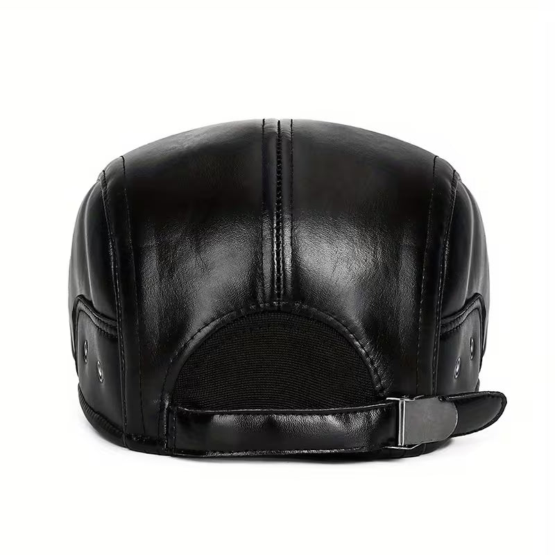 Windproof Thermal Winter Hat for Men – Glossy Black, Adjustable & Warm