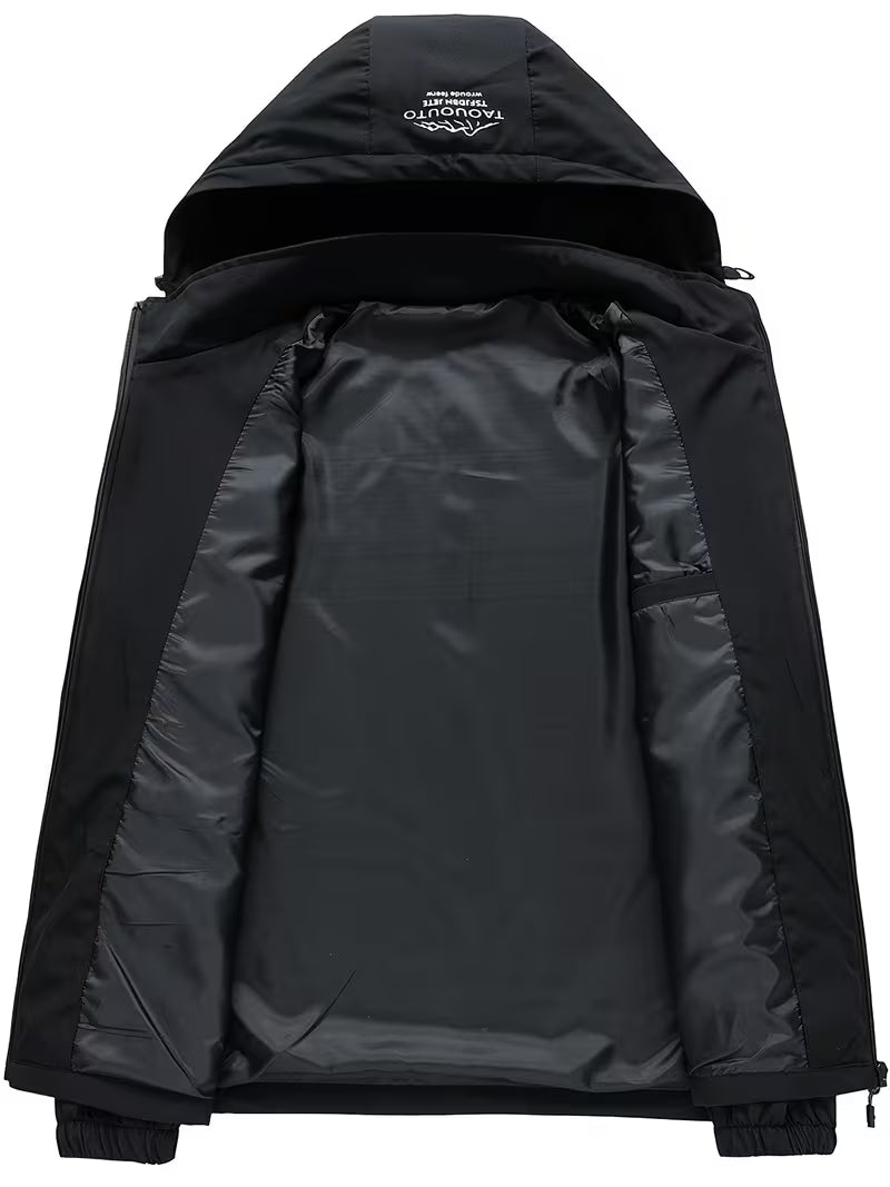 Men’s Windproof Hooded Jacket – Detachable Hood, Durable Outdoor Wear